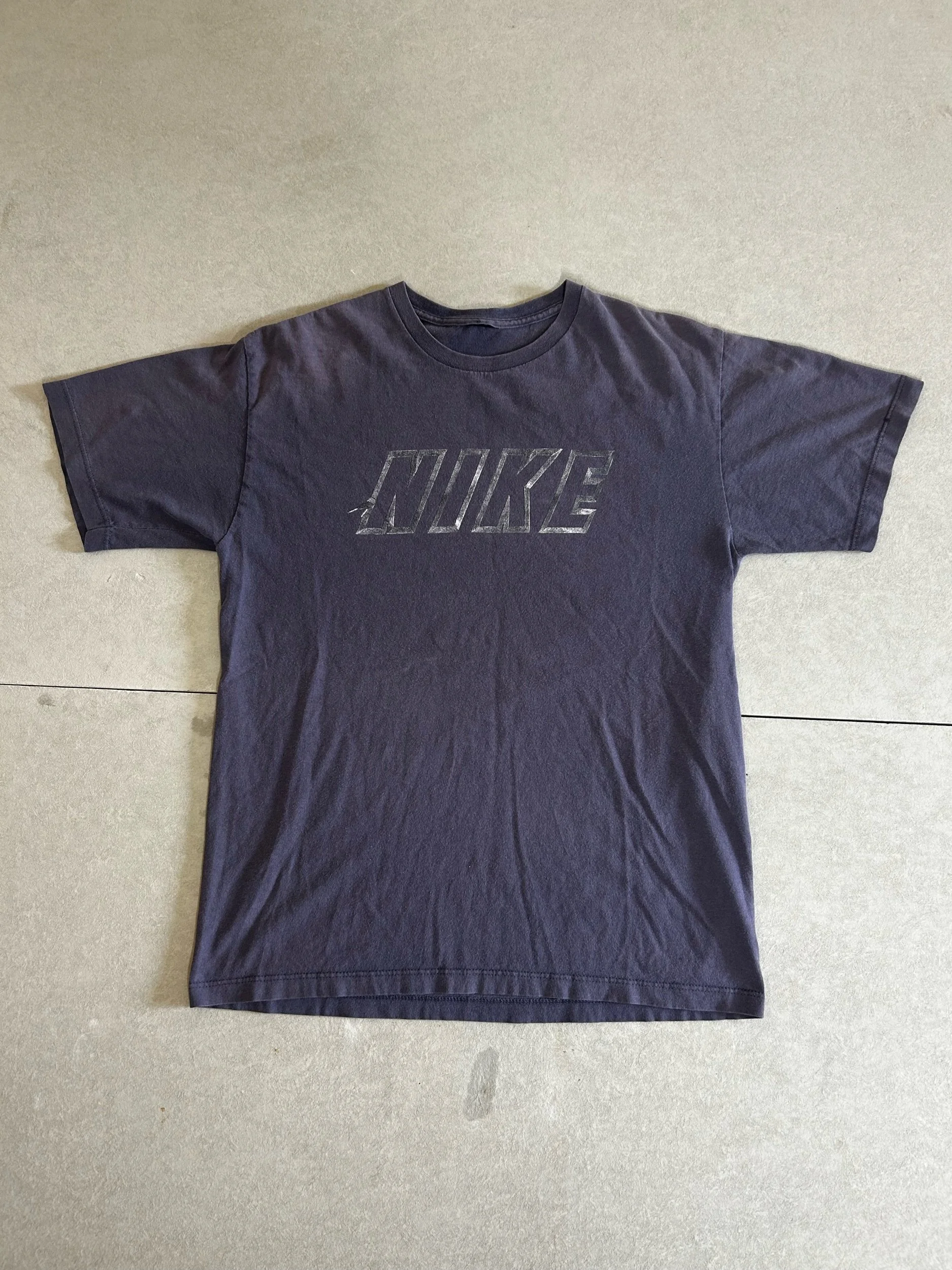 2000s Vintage Nike Barbwire Print Faded Navy T Shirt Size M