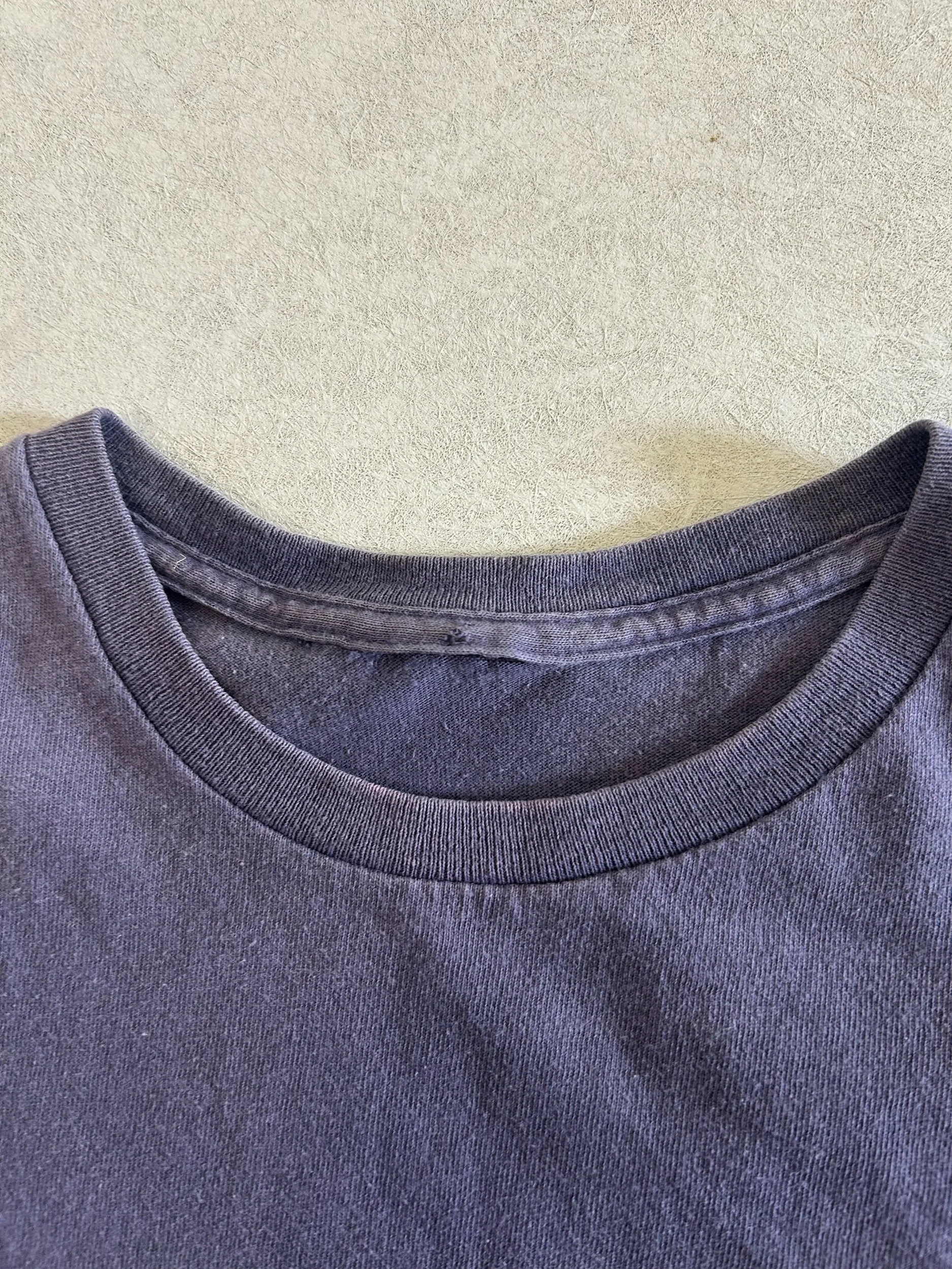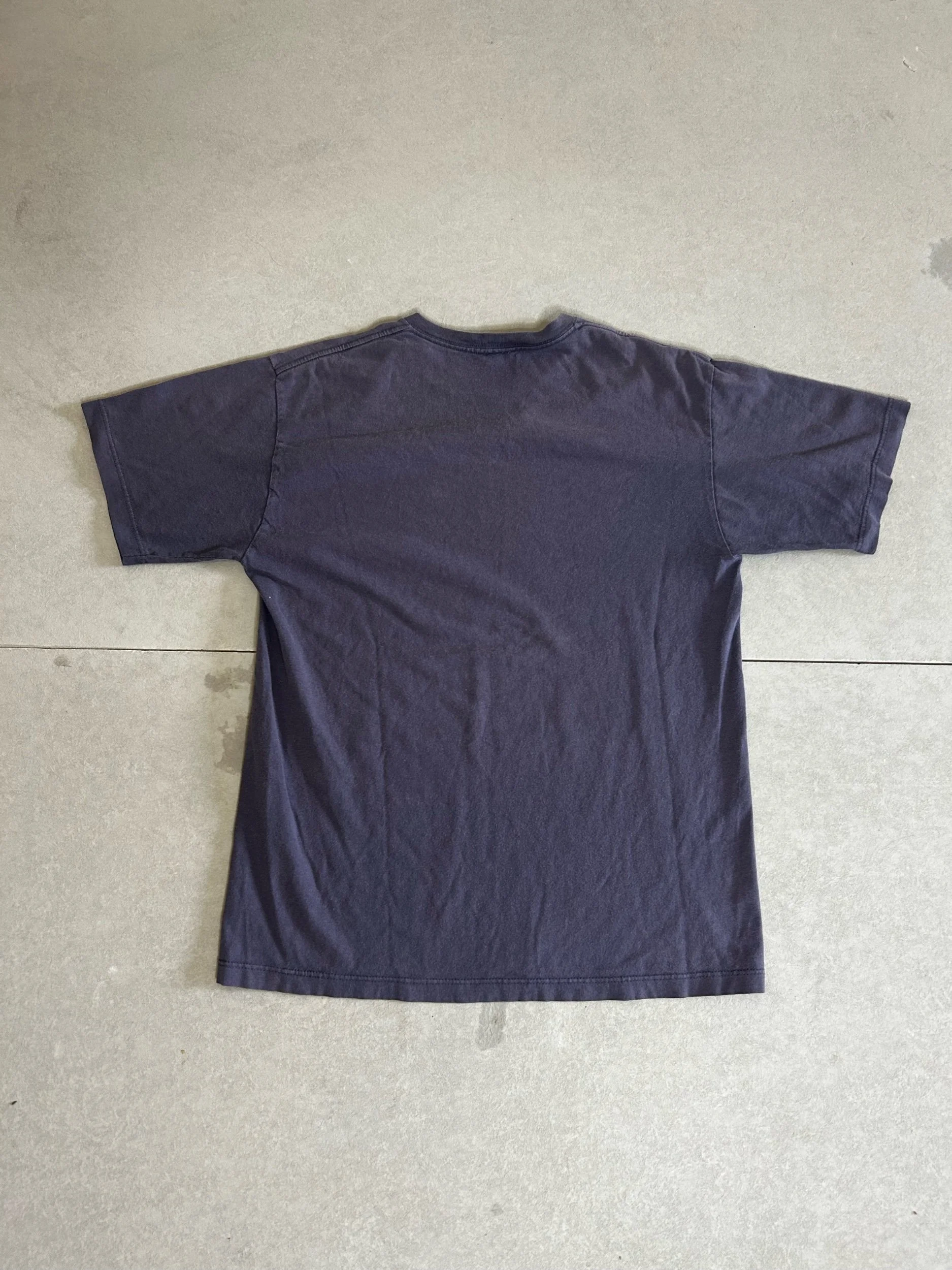 This 2000s vintage Nike tee stands out with its rare barbwire print graphic, giving it that edgy Y2K streetwear vibe. The faded navy color and soft cotton material add the perfect touch of vintage character, worn-in and full of personality. With its medium fit and bold early-2000s design, this tee is a unique find for any vintage Nike or Y2K fashion fan looking for something with attitude.